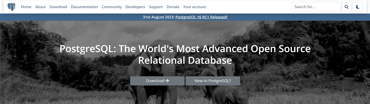 PostgreSQL의 공식 사이트에 접속한다.